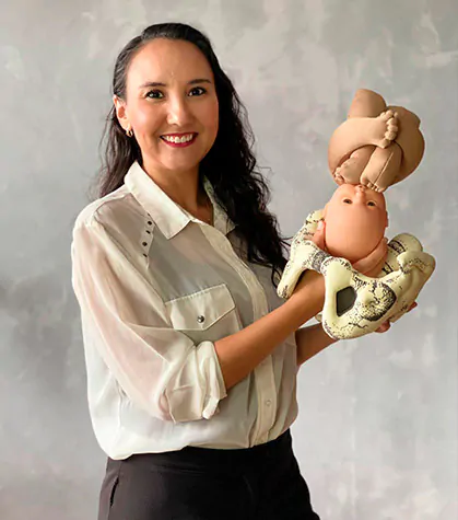 Psicóloga formada pela UNESA, pós-graduada em Gestão de Pessoas pela Faculdade Ruy Barbosa (SSA/BA), estudante da pós-graduação de Sexualidade Humana pela FAVENI e membro de grupo de estudos da Escola Brasileira de Psicanálise. Ao viver o puerpério, veio o desejo de se tornar doula e se formou pelo Instituto de Yoga e Terapias Aurora (Fadynha). Seguiu aprimorando seus conhecimentos com cursos de amamentação e outras especializações, como o Workshop A Arte do Parto, de Naoli Vinaver. Foi tutora do Curso de Atualização Profissional de Doulas da Escola Politécnica Joaquim Venâncio (FIOCRUZ) e fez parte da Diretoria de Formação e Pesquisa da Associação de Doulas do Rio de Janeiro.